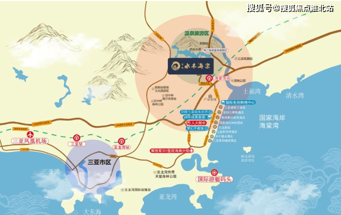 交通:周边直线 1km 内有 3 个公交站,有海棠湾 1 路、3 路等公交线路。直线离三亚凤凰机场 35 公里,直线距离三亚高铁站 27 公里、直线距离亚龙湾站 17 公里,直线距离 2.4 公里可达海南环线高速主干道。