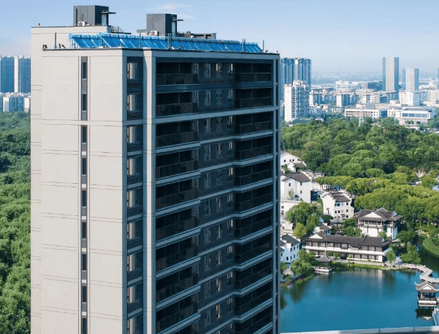 建筑设计:采用中西合璧建筑风格,外立面运用仿石材一体板和铝板线条,整体美观大气。项目共 7 栋楼,由 5 栋 18F 小高层和 2 栋 23F 高层组成,全部为首层架空,打造微度假式风格社区。