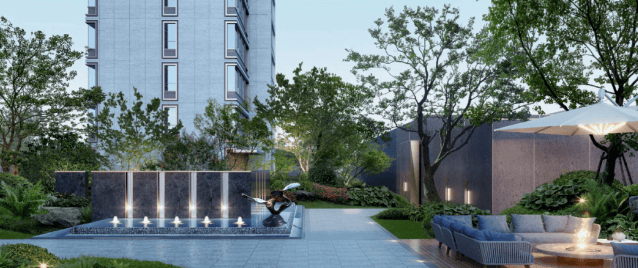 果岭式景观:采用立体堆坡造景,最高约1.2-1.5米,结合九曲归园设计,营造移步异景的归家体验。