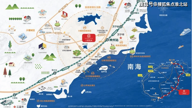 项目距离东线高速仅 1 公里,距离神州高铁站约 2 公里,小区门口有公交站牌,交通便利,可轻松抵达海南岛的各个角落。