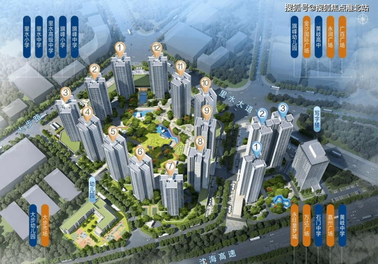 小区配套:下沉式星级会所、超2000m²儿童游乐区、32000m²中央大园林、12班公立幼儿园、超20000㎡商业综合体