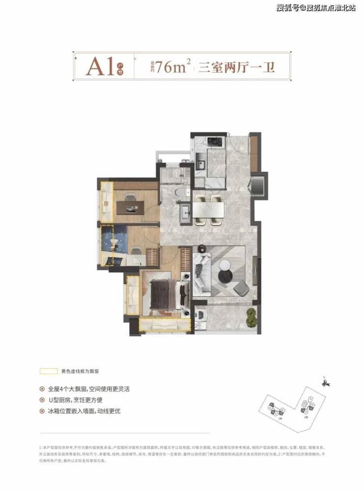 【产品面积】:76㎡3房2厅1卫、90㎡3房2厅2卫