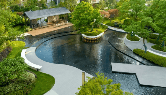 小区内部,江南式绝美园林与低密洋房交相辉映,营造出一种宁静而优雅的生活氛围。中庭超大水系景观,坡度水池、叠水水系交相辉映,涓涓流水注入水池,漫游池边,气定神闲。休闲庭院坐落其中,清澈的水池、四季变换的花草树木、精致小喷泉点缀其间,共同编织着独一无二的唯美故事。从无人机视角俯瞰,波光粼粼的水面映衬出园区奢美的画面,令人叹为观止。