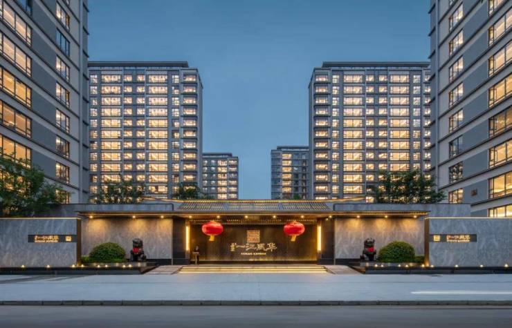 小区主入口是一个楼盘的门面,也是项目精华所在。从一江风华的大门看,主入口新中式大门豪气尊贵。