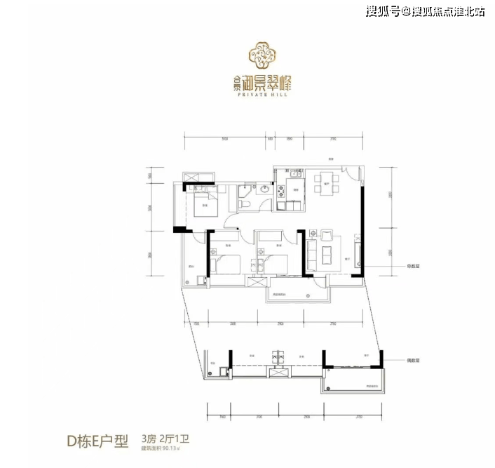 小户型:49.48㎡(1 房 2 厅 1 卫),卧室与客厅均享山景;72.03㎡(2 房 2 厅 1 卫),带生活景观阳台,厨房自带小阳台;90-91㎡(3 房 2 厅 1 卫),南向设计,双景观阳台。