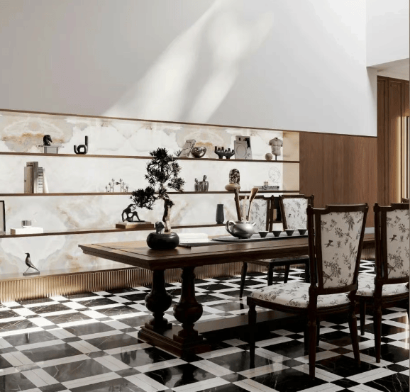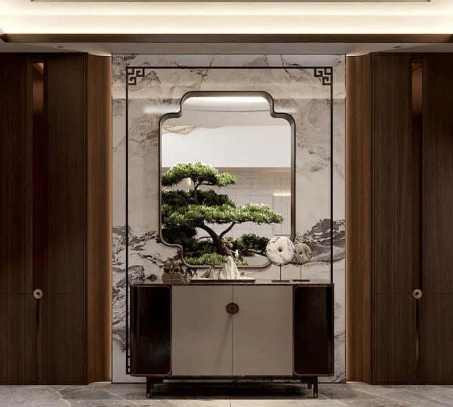 工艺细节:遵循古典园林叠山艺法,亭台水榭、戗角飞檐、挂落窗格依循古制设置,皆由手工细致打磨,花街铺地特选芝花海棠纹样,寓意富庶长寿。