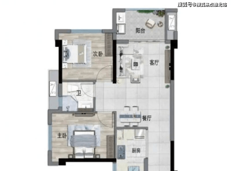 75平米:三房两厅一卫,双开间朝南,75做三房,导致客厅和卧室空间都不大,卫生间也只能做成双隔离,不过小面积三房,同时各空间都有采光,对于刚需而言还是有较大吸引力。