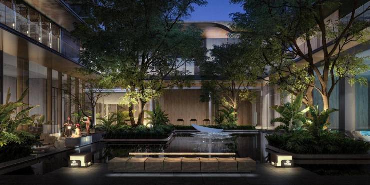 项目占据三亚中央商务区月川单元核心,这里是三亚规划的 “全球文化艺术旅游消费总部经济区”,周边高端写字楼与商业体林立,同时距三亚湾仅 1.2-1.5 公里,步行 20 分钟可达海岸。更难得的是,项目处于三亚河、临春河双河交汇处,背山面海,毗邻临春岭公园、金鸡岭公园等三大生态秘境,形成 “山 - 海 - 城 - 河” 的东方美学格局,是市区少有的 “近海不临海” 宜居范本