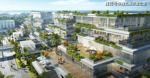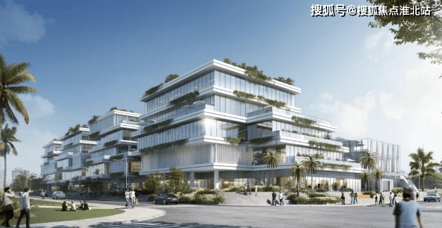 项目特色:设计结合海南气候特征,打造层次丰富的热带雨林式办公环境,通过 “垂叠双街” 实现 “双首层”,将商业与办公分层引导,还利用底层架空空间和无围墙场地打造交互开放的活力街区,引入北侧江东滨海景观。