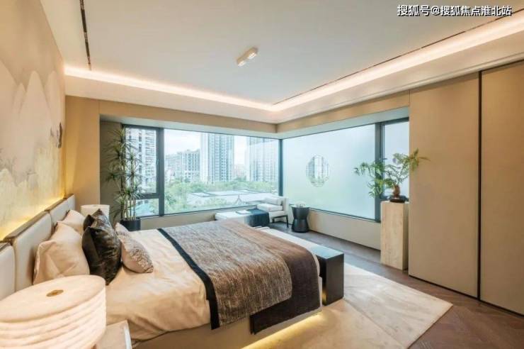 在星级酒店式主卧里,整整两面墙被270°巨幕玻璃替代,消除了卧室的采光死角。这样一来,每天的朝起夕落都不会错过,站在窗边感受诗意园林的岁月静好,还能与桂澜中轴一同见证城市的日新月异。主卧不仅有干湿分离的卫浴,还能拥有梳妆台、步入式衣帽间!次卧室也可容纳1.8米大床,让生活日常精致优雅。