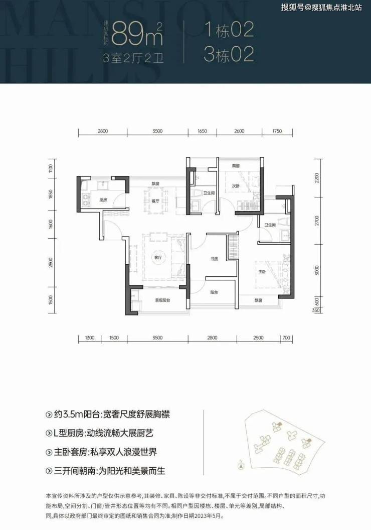 户型面积布局0189平三房两厅两卫设计的南北通透竖厅格局,客厅3.5米开间,三开间朝南,L型厨房,3个卧室做到了2.9/3.2/3.1米的宽度,阳台主朝西南向。户型面积布局0289平三房两厅两卫设计的南北通透竖厅格局,客厅3.5米开间,三开间朝南,L型厨房,3个卧室做到了2.6/2.8/3.2米的宽度,阳台主朝东南向。户型面积布局0389平三房两厅两卫设计的经典竖厅格局,客厅3.5米开间,三开间朝南,L型厨房,3个卧室做到了2.5/2.8/3.2米的宽度,都是东南朝向。