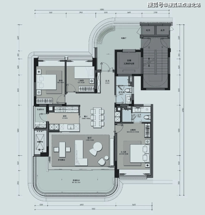 游隐户型:建筑面积约 165㎡,三室三厅三卫。户型方正,双厅一体,双主卧套房,巨幕朝南阳台。
