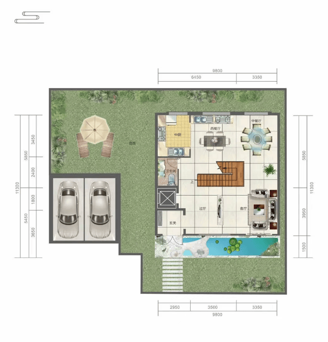 项目规划:小区内共有 15 栋独栋别墅,容积率 0.25,绿化率较高。户型有建筑面积 272㎡左右和 425-505㎡左右两种,使用面积分别为 370㎡左右和 500-550㎡左右。其中,建筑面积 272㎡左右的别墅,建筑面积 425-505㎡左右的别墅