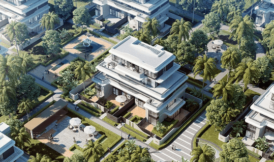 墅境叠院设计:提供109-196㎡墅境叠院,上叠赠送约70㎡露台,下叠赠送约65-100㎡花园,空间利用率高,兼具居住与休闲功能。
