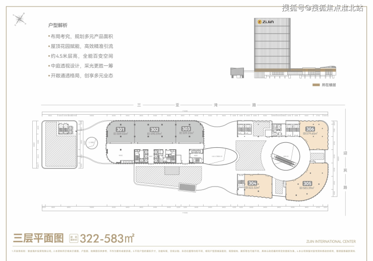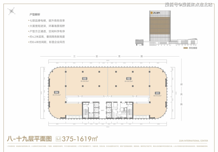 三亚中央商务区 CBD 紫金国际中心开售,一线海景高端写字楼及商铺,建面 375-1619 平,离海约100米。