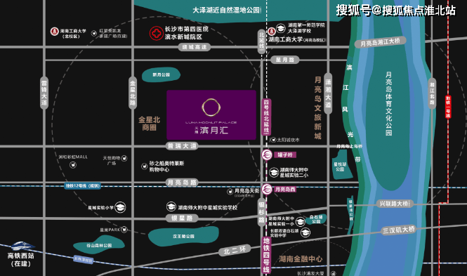 交通配套:地铁 4 号线罐子岭站为该项目预留了一个地铁站出入口,近抵兴联路大桥、三汊矶大桥,坐拥银杉路、普瑞大道、潇湘北路三大主干道,交通出行十分便捷。