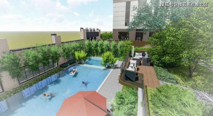此外,项目极为注重整体氛围的构建,在泳池四周搭建了吧台、更衣室、洗脚池等休闲配套,让业主在畅游之后提供一处不可多得的休憩场所。更为惊喜的是,站在此处的景观挑台,可远眺马峦山,四季美景尽收眼底。