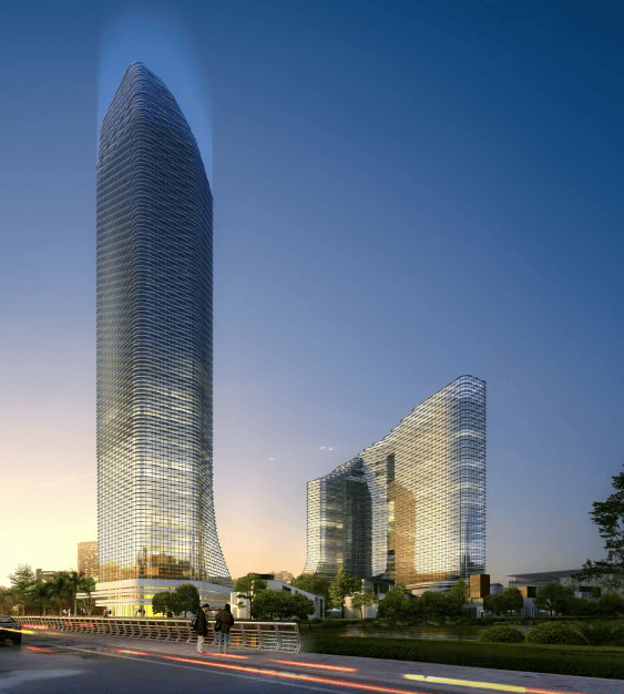 建筑特色:主楼 1 号楼高度约 178 米,是鄞州地标性建筑,外立面采用全玻璃幕墙打造,创意源于海丝之路,采光充足、视线开阔,可享受 360 度全景 MAX 视觉盛宴。