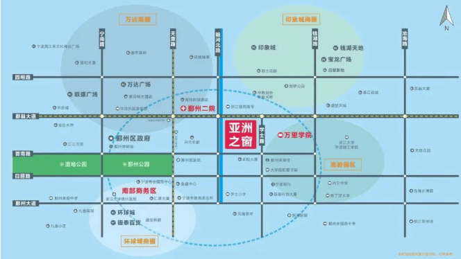 商业配套:2 公里生活半径内有万达广场、印象城、环球银泰城等鄞南核心商圈,还有宁波京东 MALL、利时・城市奥特莱斯等购物中心,满足购物、娱乐、餐饮等多种需求。