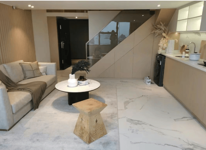 设计精美:如约 60㎡户型有 4.6 米超宽客厅,全幕墙设计;约 70㎡户型有 6 米左右全落地玻璃大开间,环幕 MAX 客厅,墅级挑高客厅,现代精奢的设计风格,可拎包入住。