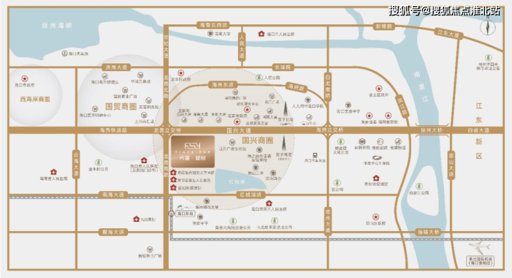 3大城市主干道:国兴大道、龙昆南路、海秀快速路交汇,约4公里可达国贸老城区、海口东站、汽车客运总站,5公里辐射海口核心商圈,经机场联络线约20公里到达美兰国际机场。