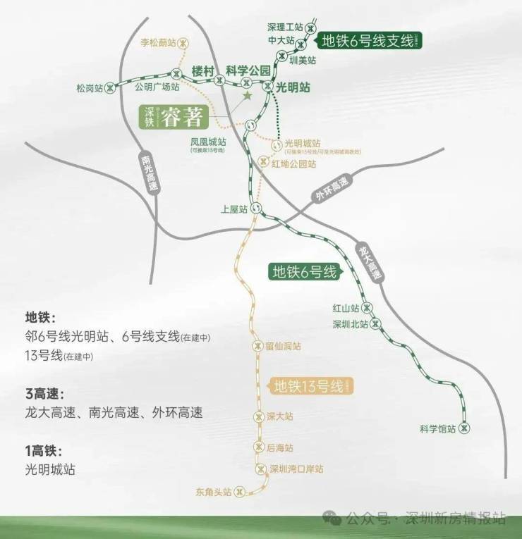 3地铁:邻6号线光明站、6号线支线 (在建中)、13号线 (在建中)
