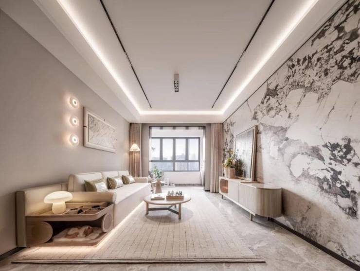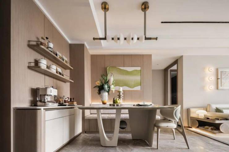 第一个亮点,室内软装是邀请梁志天大师团队进行设计的,分为两大主题,预设家庭生活场景,围绕家庭成员的居住方式,加载健身、书房、茶室、养宠等功能,展现生活的精致感与摩登感。