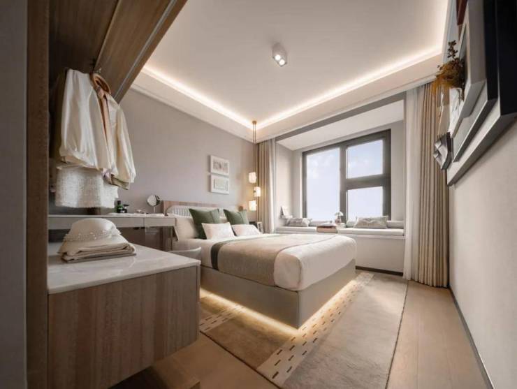 第四个亮点,是南向主卧套房设计,不仅能放得下2*1.8米双人床,且还能保留约1米的过道;同时带独立卫生间和大飘窗,增强私密性。