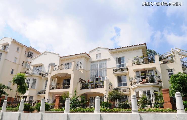 整体为西班牙 “安达卢西亚” 风格,白墙红瓦,采用红陶筒瓦、手工涂抹墙、弧形墙、一步阳台、铁艺、陶艺挂件等元素,由一栋主楼和十栋单体建筑围合形成 W 形状,围合成的西班牙庭院中心区域为休闲娱乐广场。
