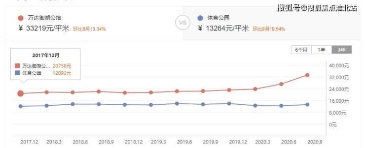 据安居客数据显示,寮厦站旁的万达御湖公馆,2017年12月二手单价为20758元/㎡,2020年9月二手单价33219元/㎡,其涨幅为60%!
