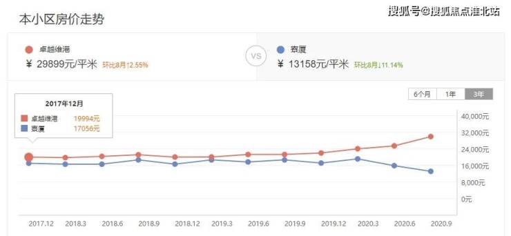 卓越维港距陈屋站约700米,2017年12月二手单价为19994元/㎡,2020年9月二手单价29899元/㎡,其涨幅为49.5%。