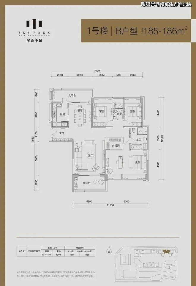 深业中城住宅合计3栋,2/3栋已售,只需看1栋的户型即可。