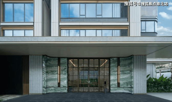 立面设计:采用摩登海派设计语言,以大面积蓝灰色 LOW-E 玻璃与浅灰色仿石铝板组合成 “芝蘭镜幕”,搭配 270° 曲面屏无立柱转角设计,外观轻盈通透,兼具时尚感与观景效果。