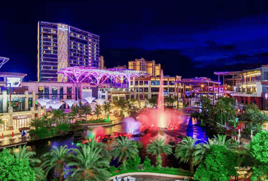 观澜湖位于海口市龙华区,是海南自贸港重点产业园区之一,紧邻深免·观澜湖免税城、观澜湖新城、五星级酒店群、狂野水世界乐园及海南华侨中学观澜湖学校等核心配套。区域年客流量超600万人次,日均稳定客流量约4万人,形成了成熟的消费商圈,为商铺提供了充足的客源基础。