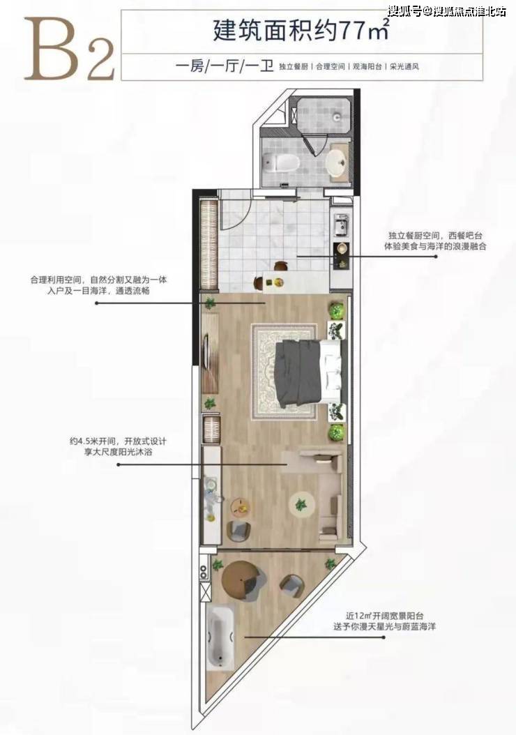B2户型约77平方米 一房一卫: