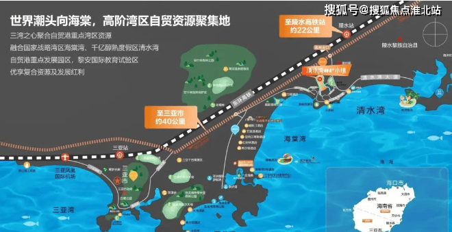 区位优势:处于三湾之心,10 公里可到海棠湾,享千亿国家度假配套;坐拥 12 公里清水湾醇熟配套;24 公里通达黎安国际教育先行区。