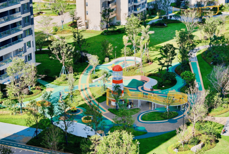 生态:40% 绿化率,环形跑道串联五大主题花园;邻西海岸生态带