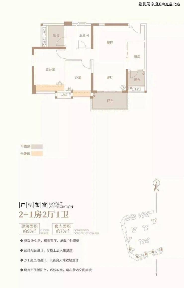 2+1房2厅1卫/约90平方米