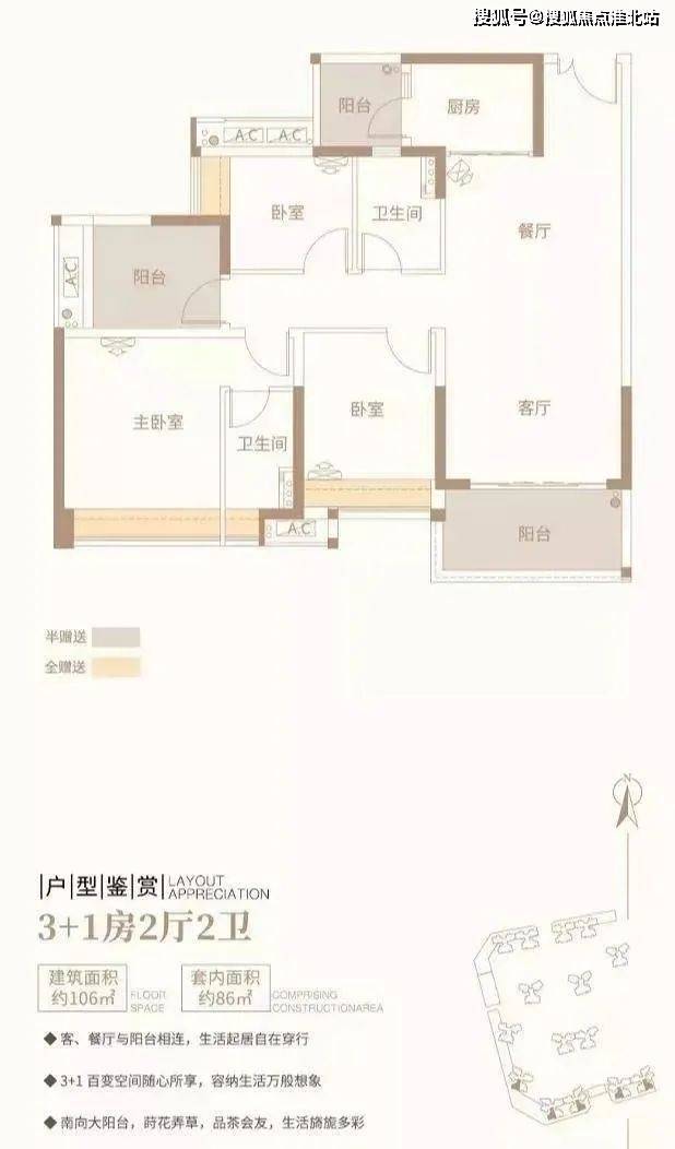 3+1房2厅2卫/约106平方米