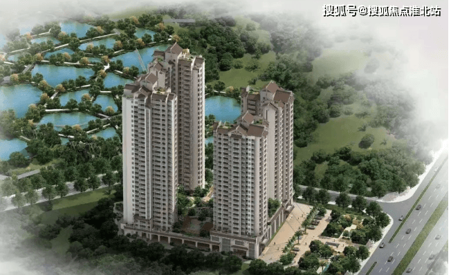 园林景观:整个小区一楼架空,将四栋楼连成一个主体,在二楼营造出一个 3000㎡的无车公共绿化空间,上设泳池、亭台等设施,1.5 米以上的覆土层可种植高大树木,与旁边 3000 亩国家湿地公园形成近 10 米的落差。