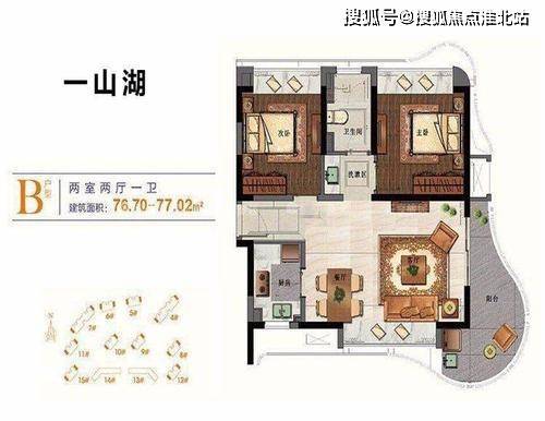 一山湖二期B户型 2室2厅1卫