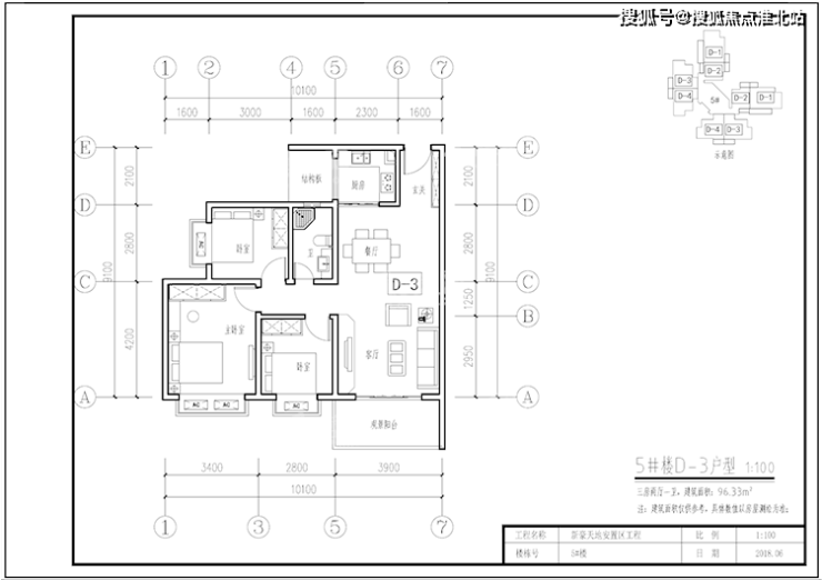 5#号楼D3户型96.33㎡(三房两厅一卫)