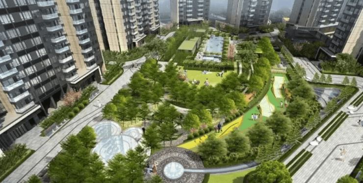 园林景观:采用围合式布局,打造中央大花园组团景观,还引入盐渎公园绿意,构建森屿花园生活。