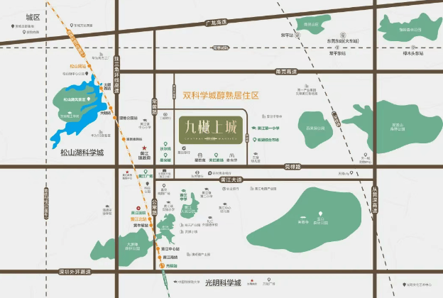 交通配套:项目地处松山湖科学城桥头堡,毗邻莞深两个高新科技产业区。周边交通便利,直线 1 公里内有多个公交站,距离地铁 1 号线黄江北站约 3 公里,3 站即可抵达深圳。