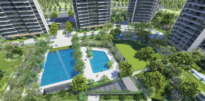 园林规划:采用围合式楼栋布局,以 “斑斓都市境,悠然诗中居” 为核心设计理念,打造 “一轴、一环、五大主题花园” 的园林景观,还在架空层设置了儿童游乐区、运动健身区等多元化互动生活场景。