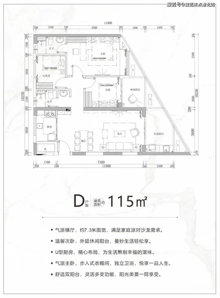 但 C、D、E 户型就不太行了,它们的阳台都是斜的,这种不规则的形状,首先家具就不好摆,很难按照咱们自己的生活习惯和喜好来布置空间。