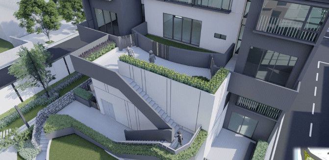 规划信息:项目占地面积约 3682 平方米,建筑面积约 12000 平方米,房屋总数 85 户,容积率为 2.2,绿化率 36%。