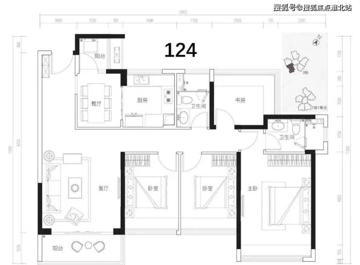 共4幢建筑物,其中1-3幢为21-34层住宅楼(1栋20层、2栋33层、3栋33层 ),4幢为2层公建配套设施(含文化站)。