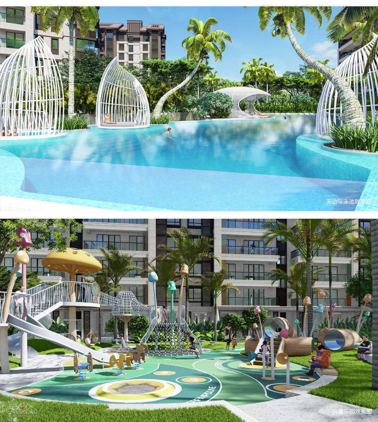 小区配套:内部设有游泳池、喷泉、凉亭、健身设施、儿童游乐区、老年活动中心等,还建有面积较大的草坪和东南亚热带风情园林,环境宜人。