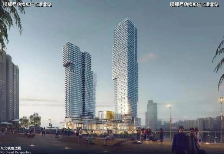 · 商务公寓:总建面约5.2万㎡,由两栋约167米高41 层塔楼组成,分小、中、大和超大户型,层高都在3米以上。还规划了屋顶花园、健身房和SPA等配套。办公位于19层以上,标准层层高4.2米。办公层共分为低一区,低二区,高一区和高二区共四个区。顶端是三层通高的观光大堂,设有咖啡、酒吧、餐厅等商业配套功能。